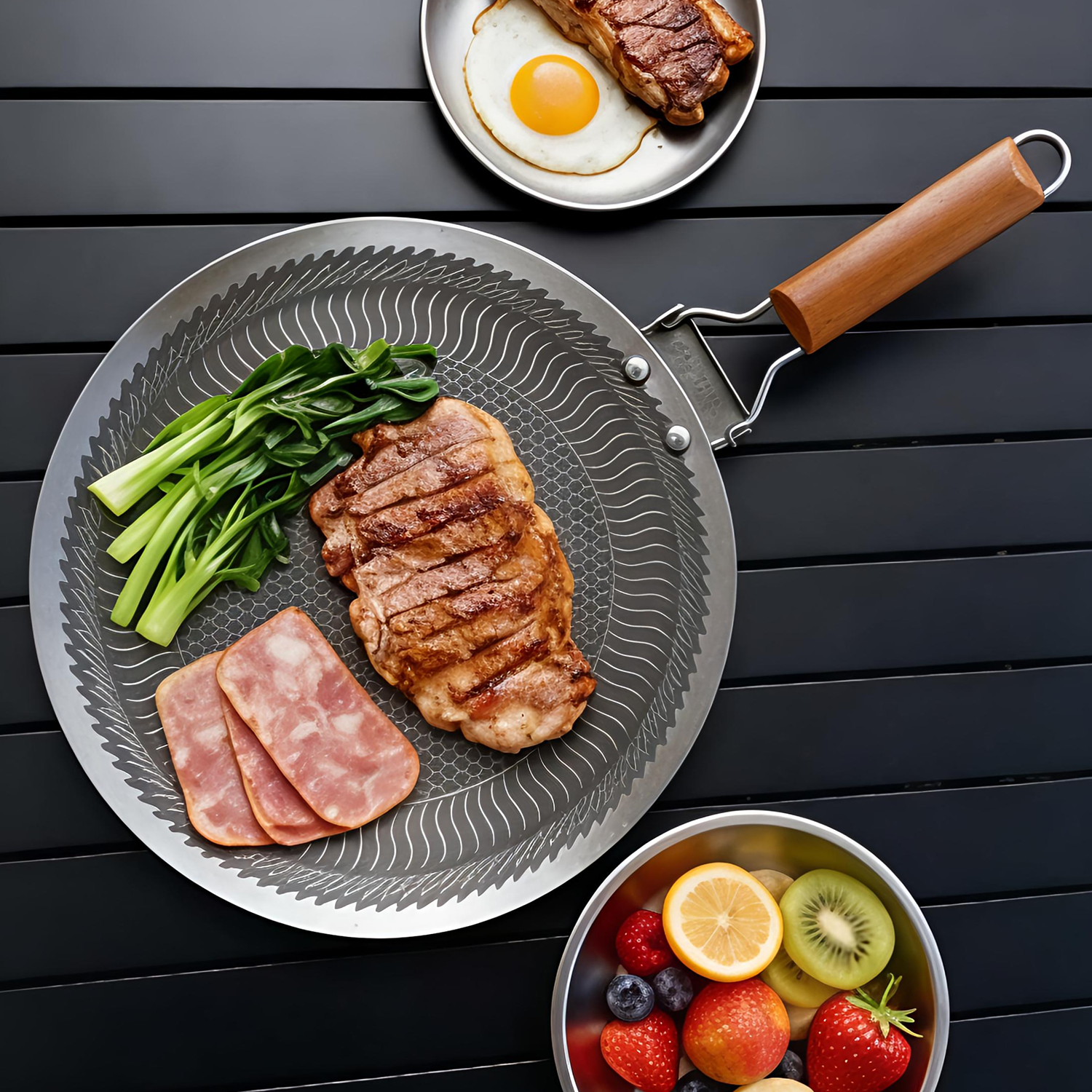 Compatible with all stoves, usable on induction cookers and open flames, suitable for both home and outdoor cooking; equipped with a 3-ply composite structure, it conducts heat evenly with no hot spots, saving energy and time for cooking; the honeycomb design achieves physical non-stick performance, coating-free for more safety, wear-resistant and easy to clean.